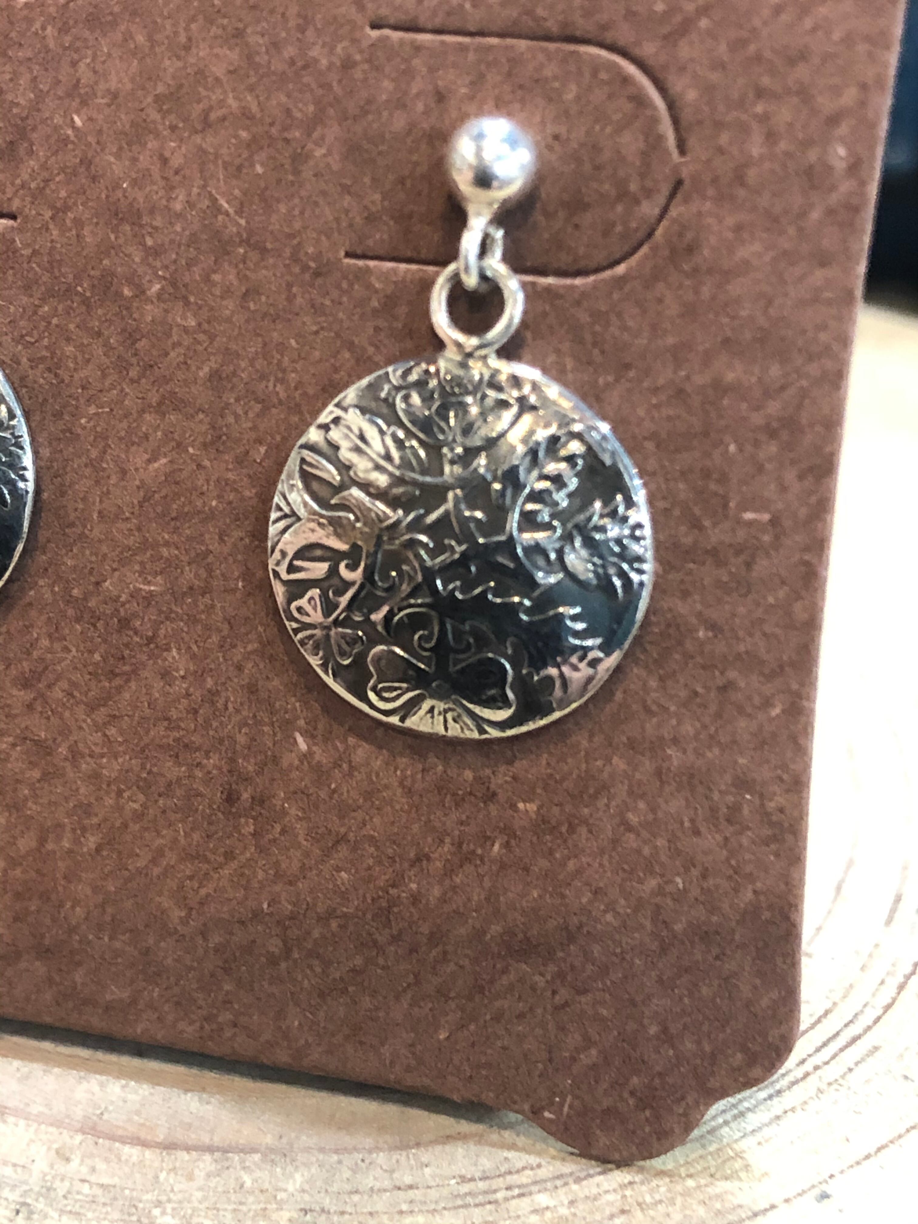 紹介させて頂く商品は、イギリスシックスペンスコインを素材でリングを作った際に出来た端材を使って、コインに穴をあけずに上面に丸カンをロウ付けして作成したピアスです。