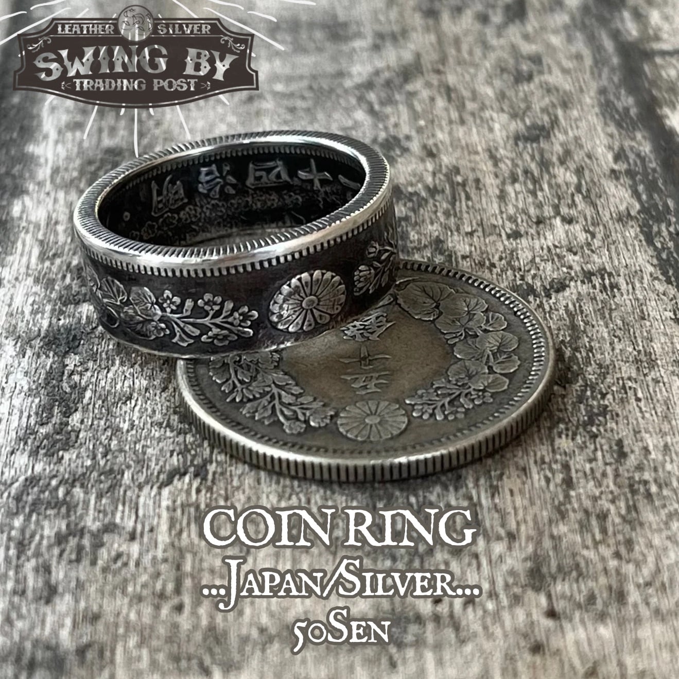 日本旭日50銭銀貨 菊花紋柄 コインリング